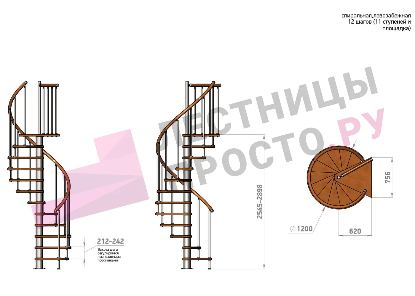 Винтовая лестница Prosto Spiral White/Высота 2545 - 2898 мм