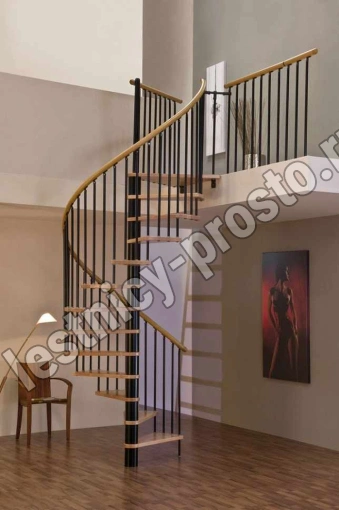 Винтовая лестница SPIRAL WOOD d140 см, чёрная, лакированный бук