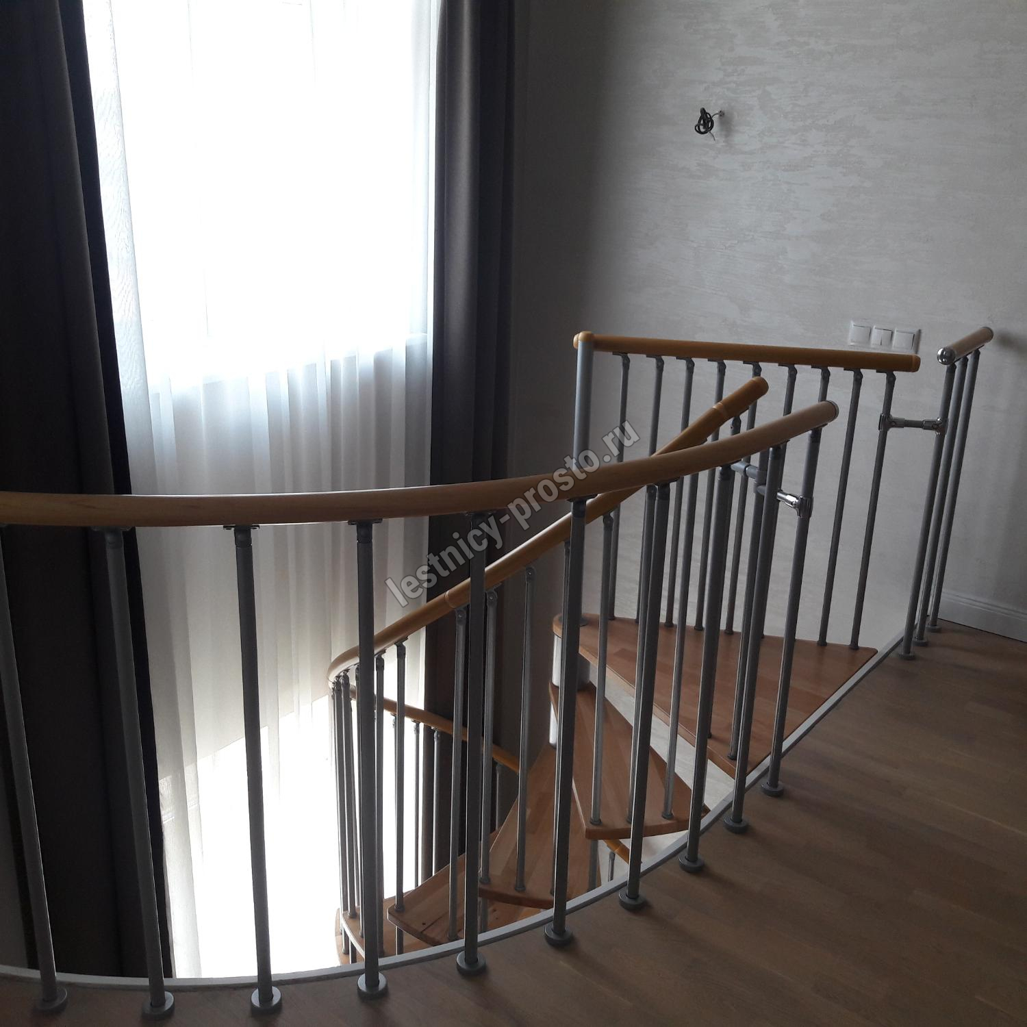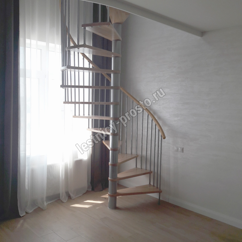 Винтовая лестница SPIRAL WOOD d160 см, серебро, лакированный дуб