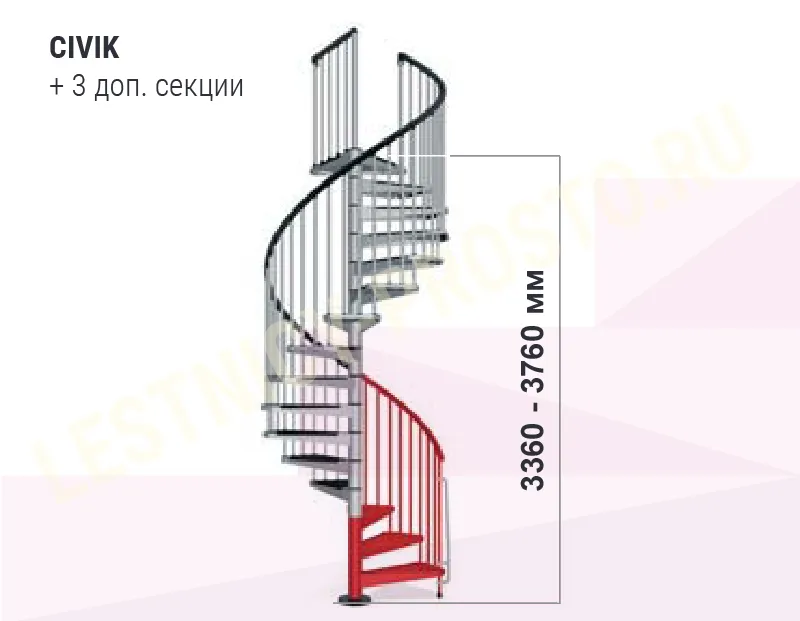 Высота лестницы регулируется при установке. С помощью специальных дополнительных секций, высоту лестницы можно увеличить до 3760 мм. (Секции покупаются отдельно).